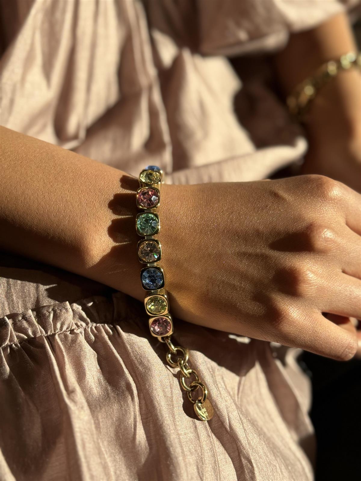 CONIAN - Vår favoritt chunky stainless steel lenket armbånd. Fylt med facettformede krystaller i forskjellige farger. Lengde 17 cm + utvidelse. Nydelig! Finnes i flere farger.