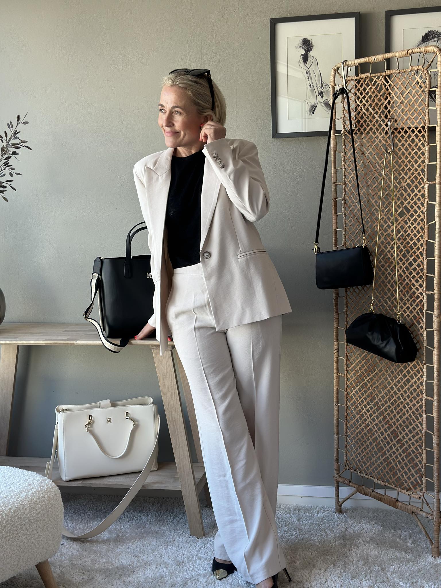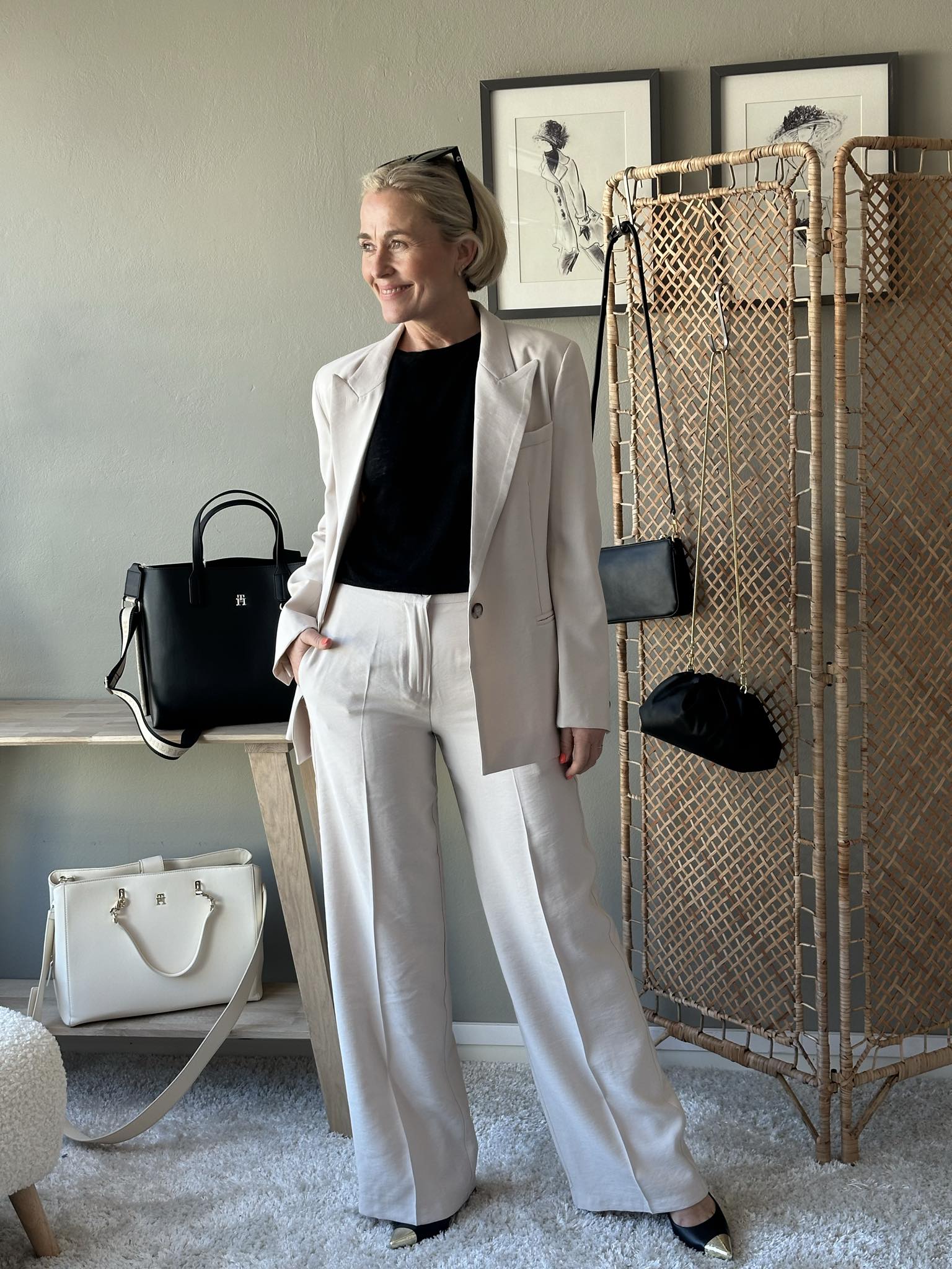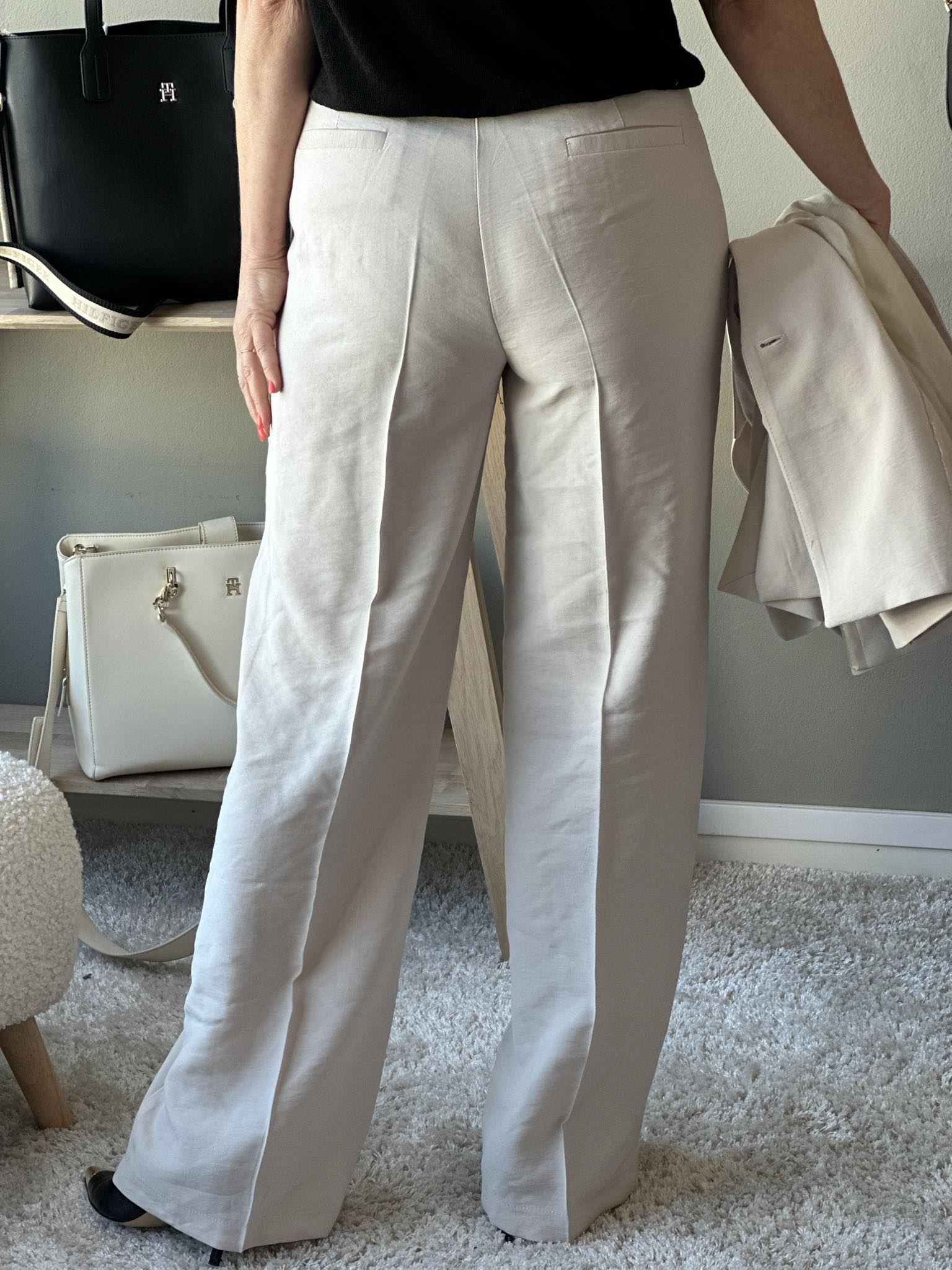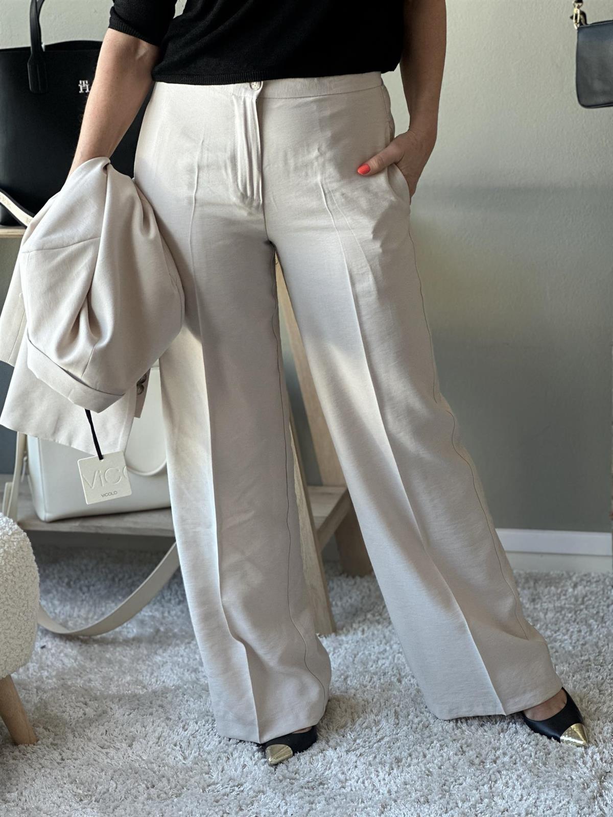 Vide dressbukser med klassisk press og stikklommer. Lukking med glidelås og knapp. Bruk den gjerne sammen med den matchende blazeren som en hel dress.