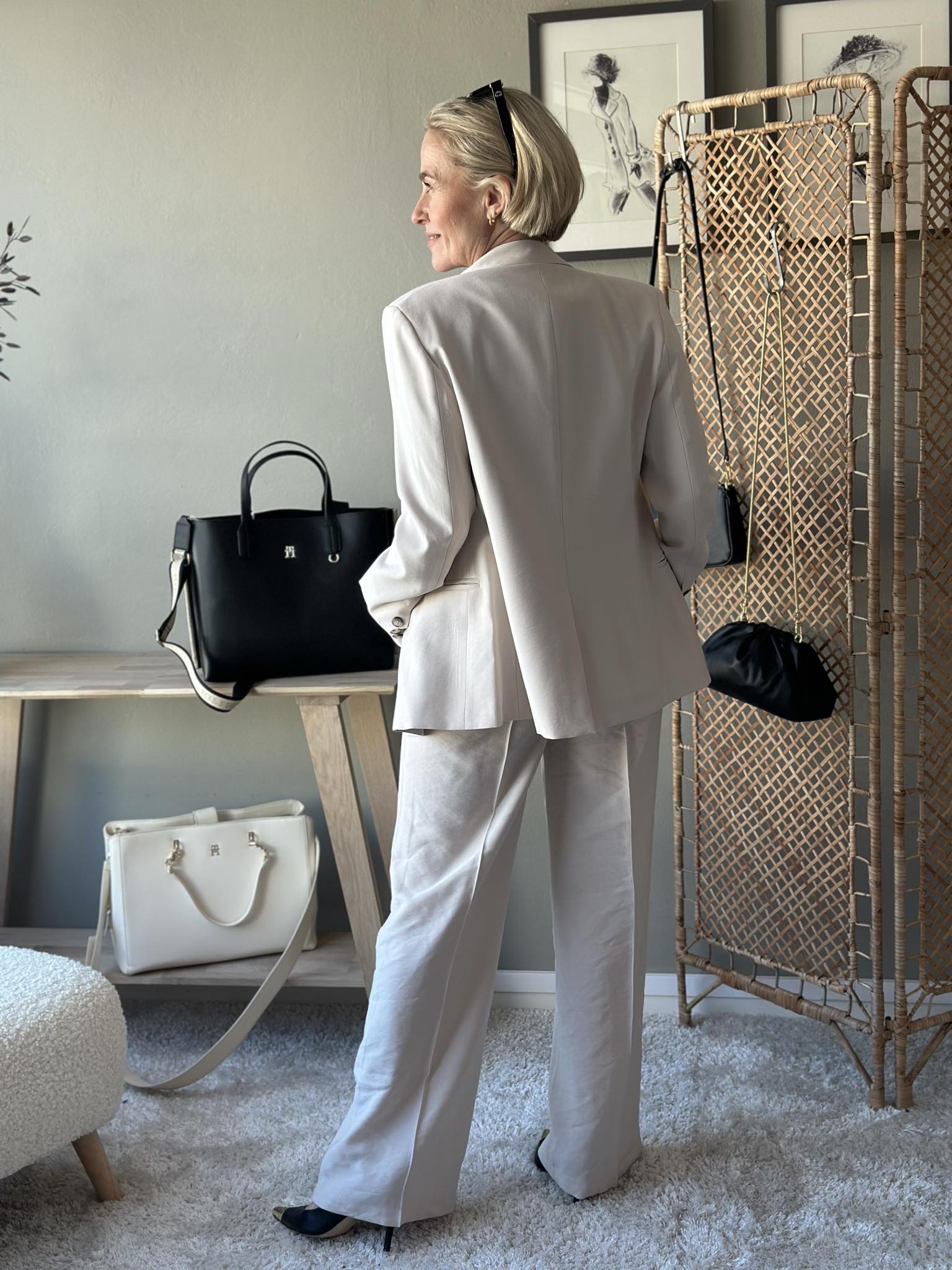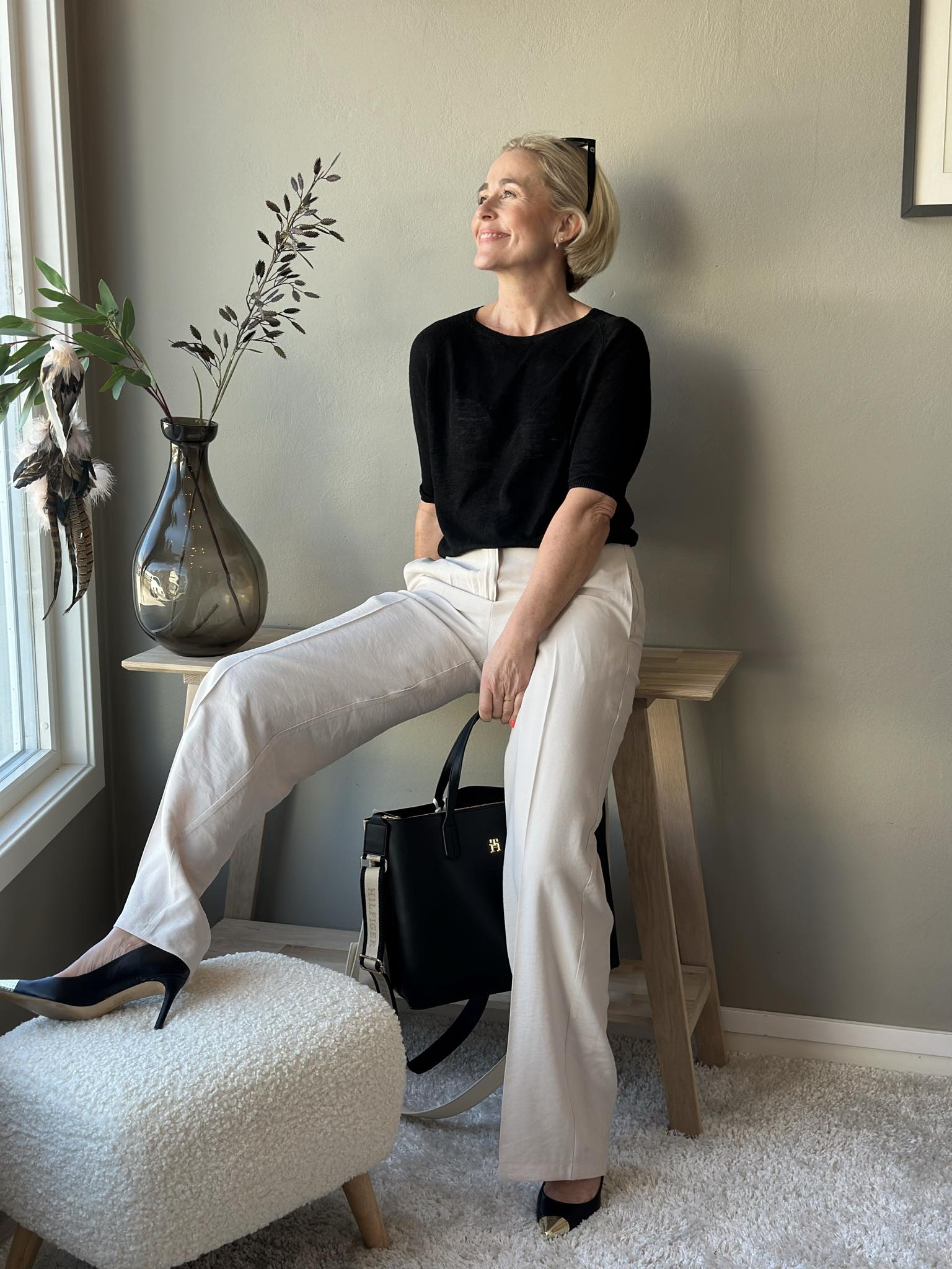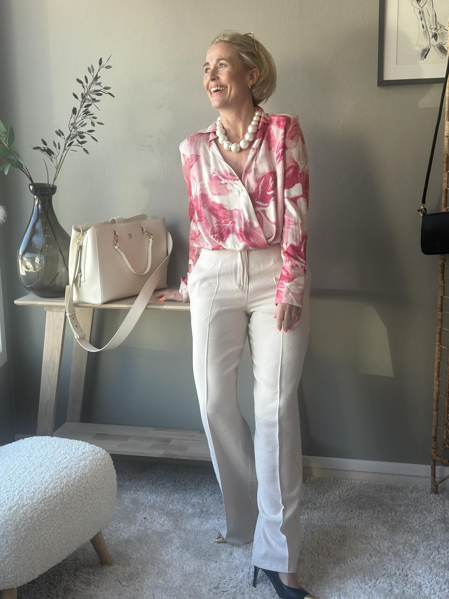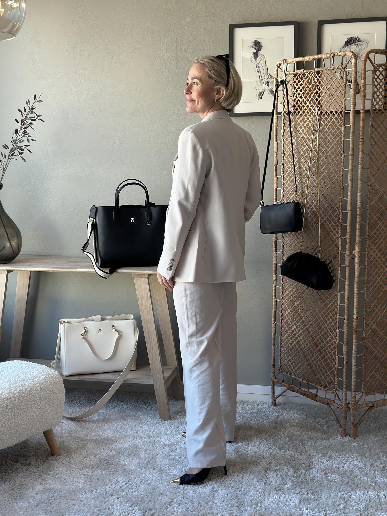 Vide dressbukser med klassisk press og stikklommer. Lukking med glidelås og knapp. Bruk den gjerne sammen med den matchende blazeren som en hel dress.