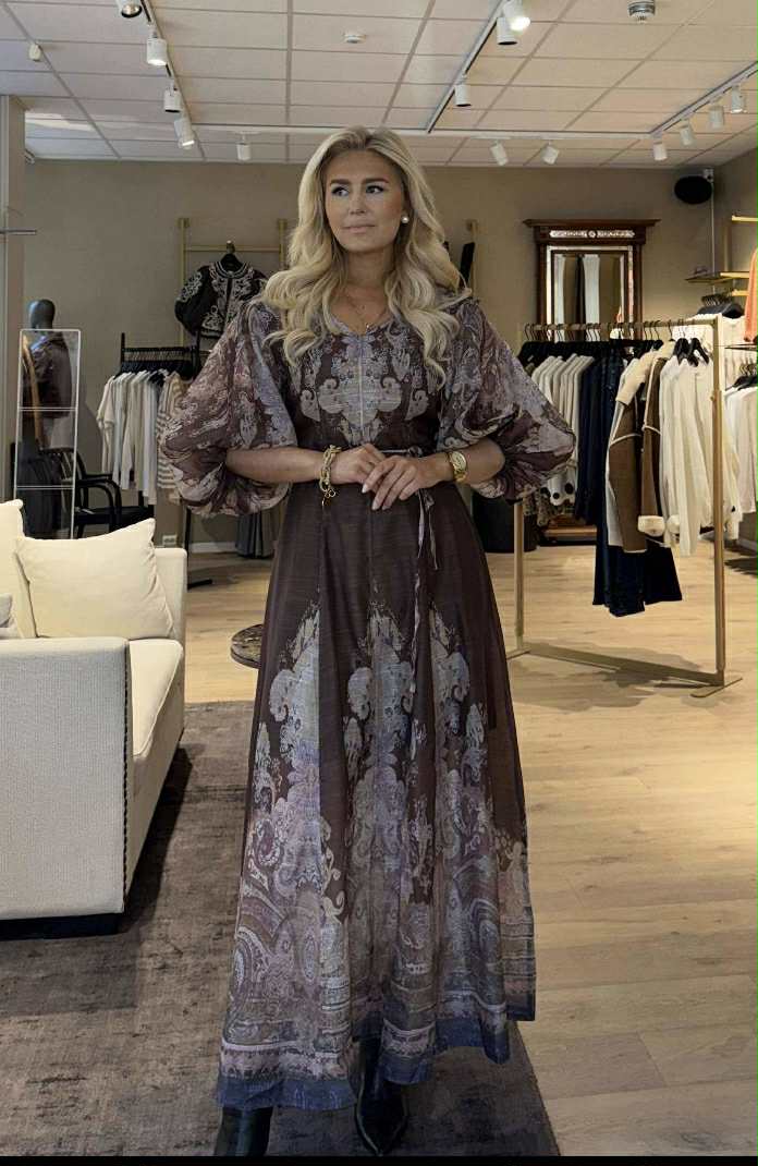 Kjole med V-hals - Brun