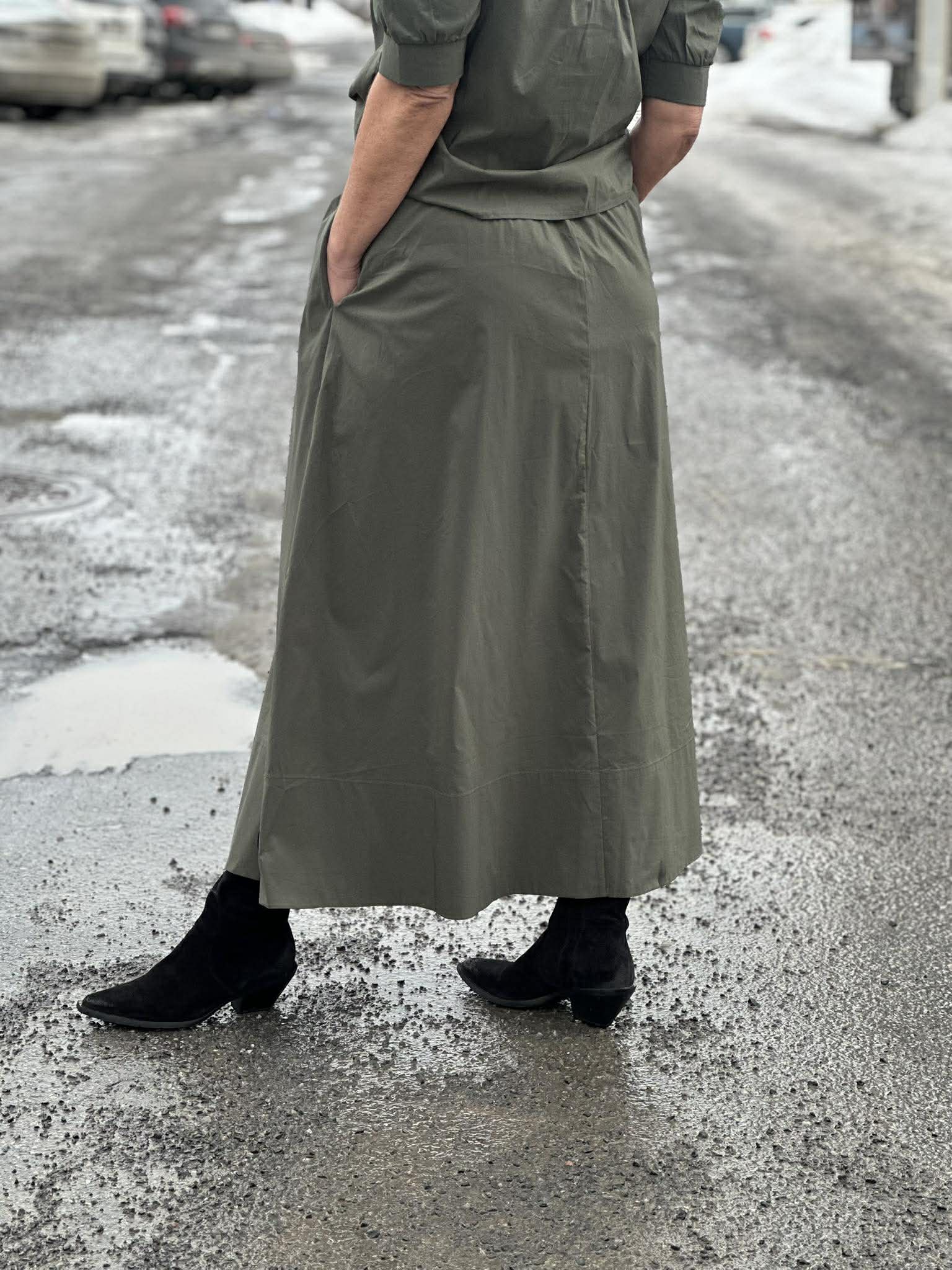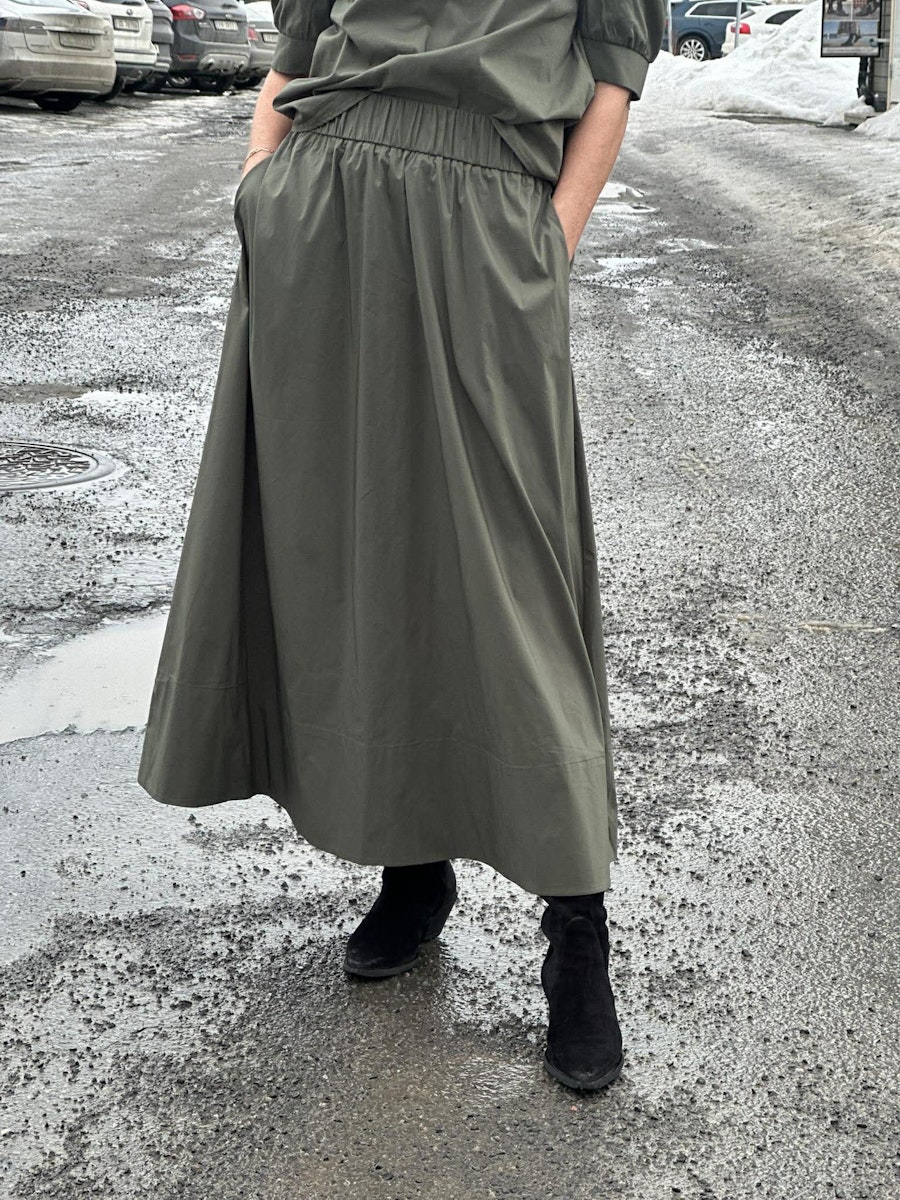 Yara Long Poplin Skirt - Grønn