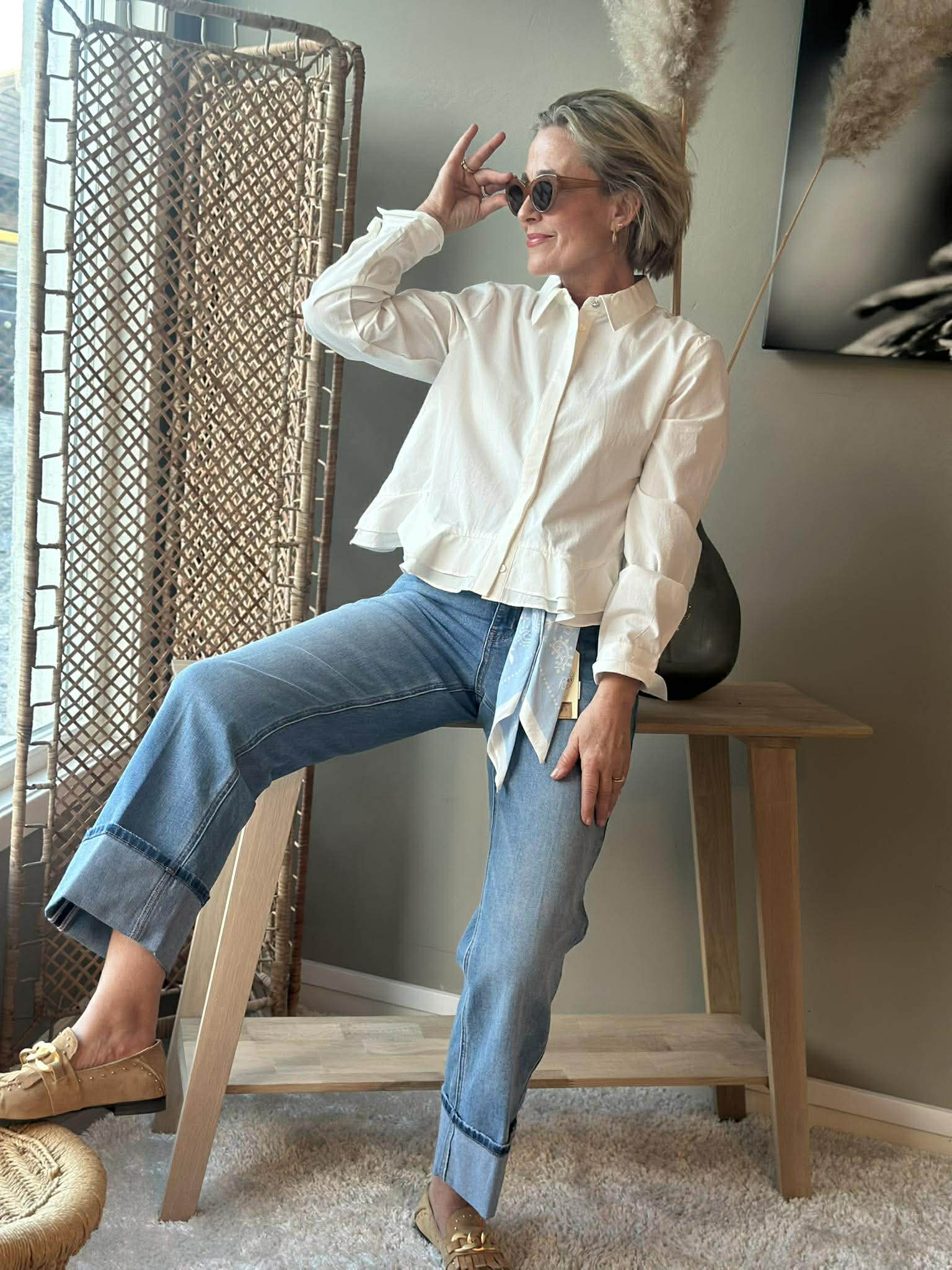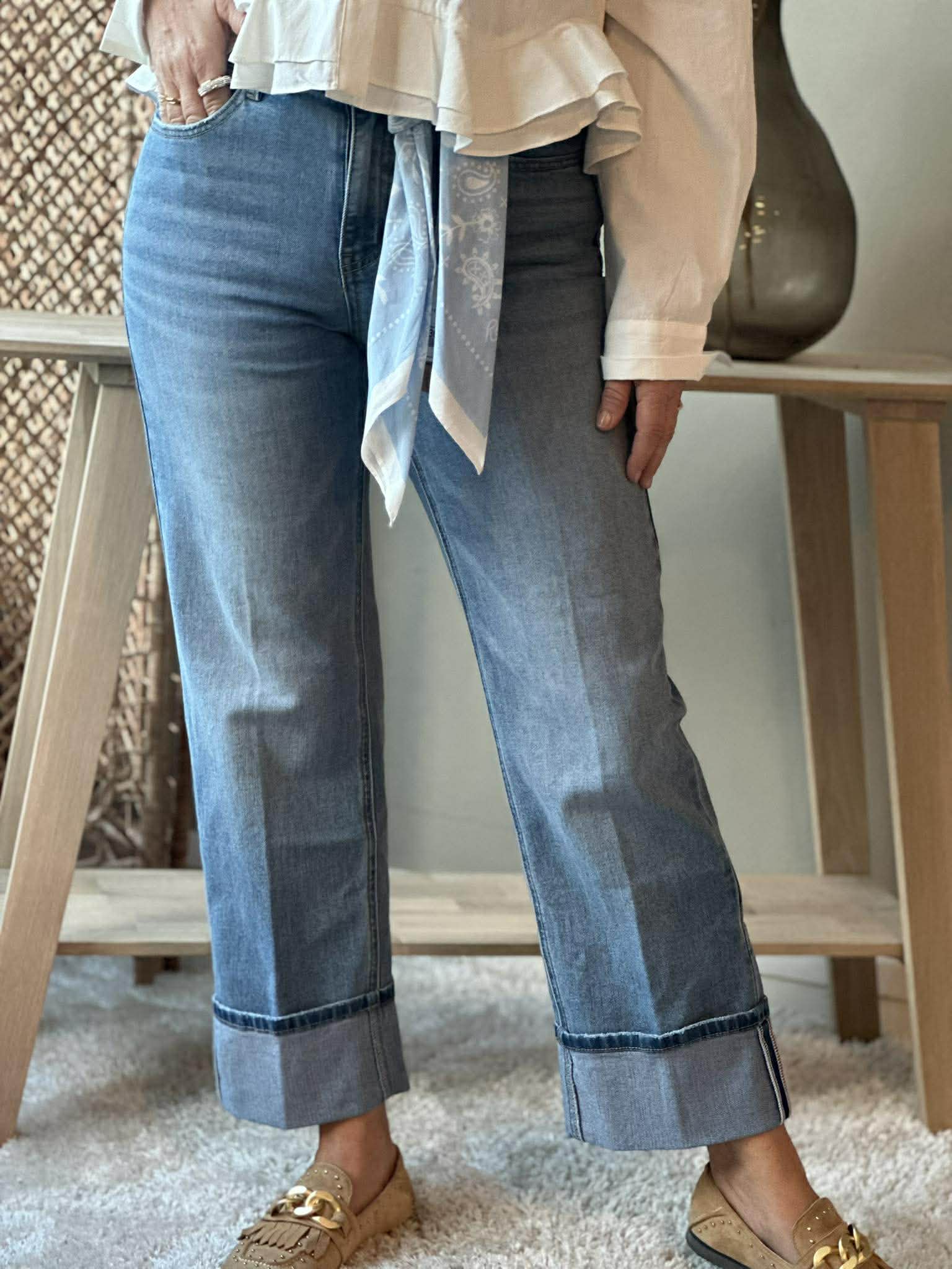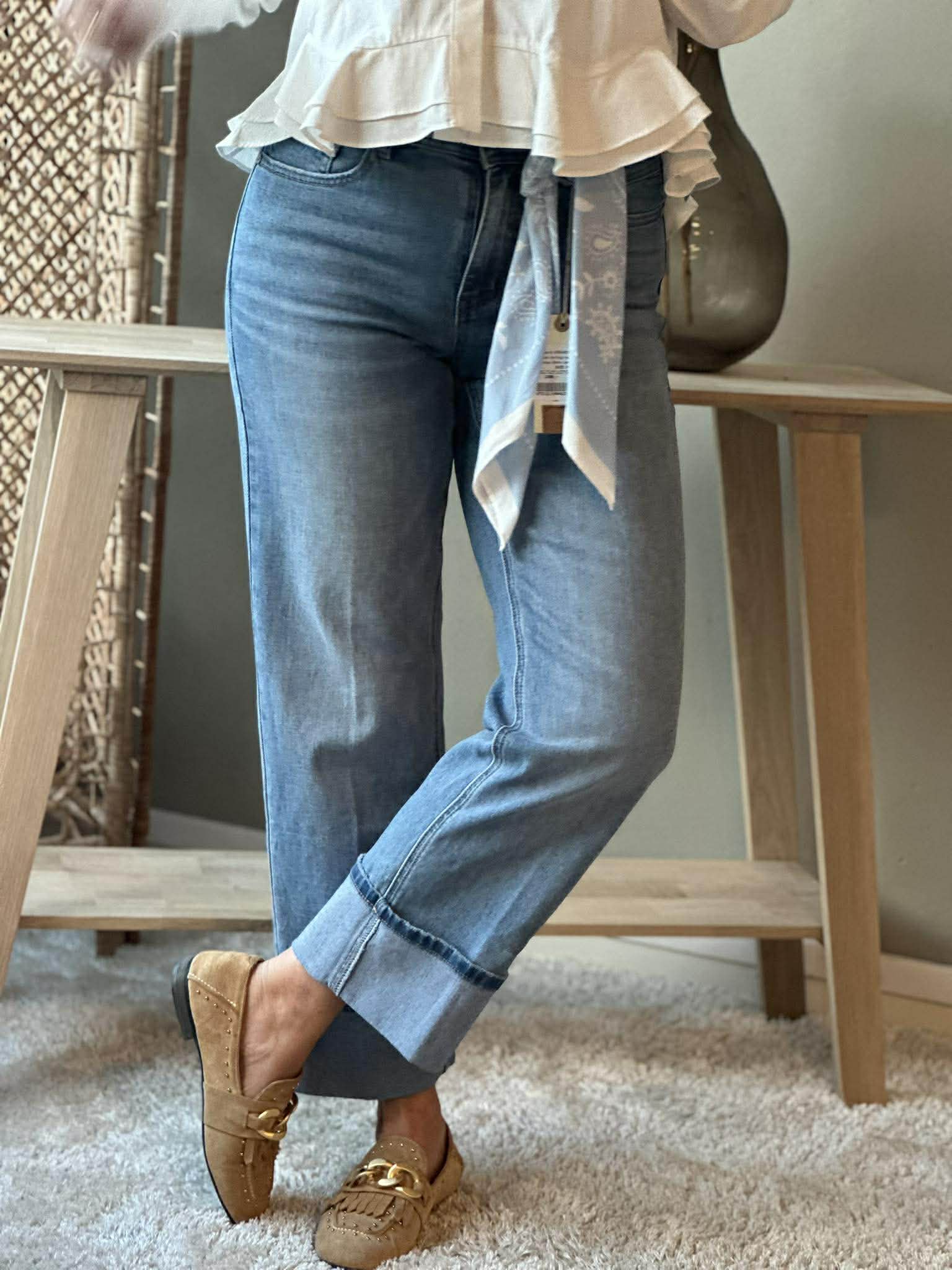 Kim High Hem & Scarf - Lys Denim Blå