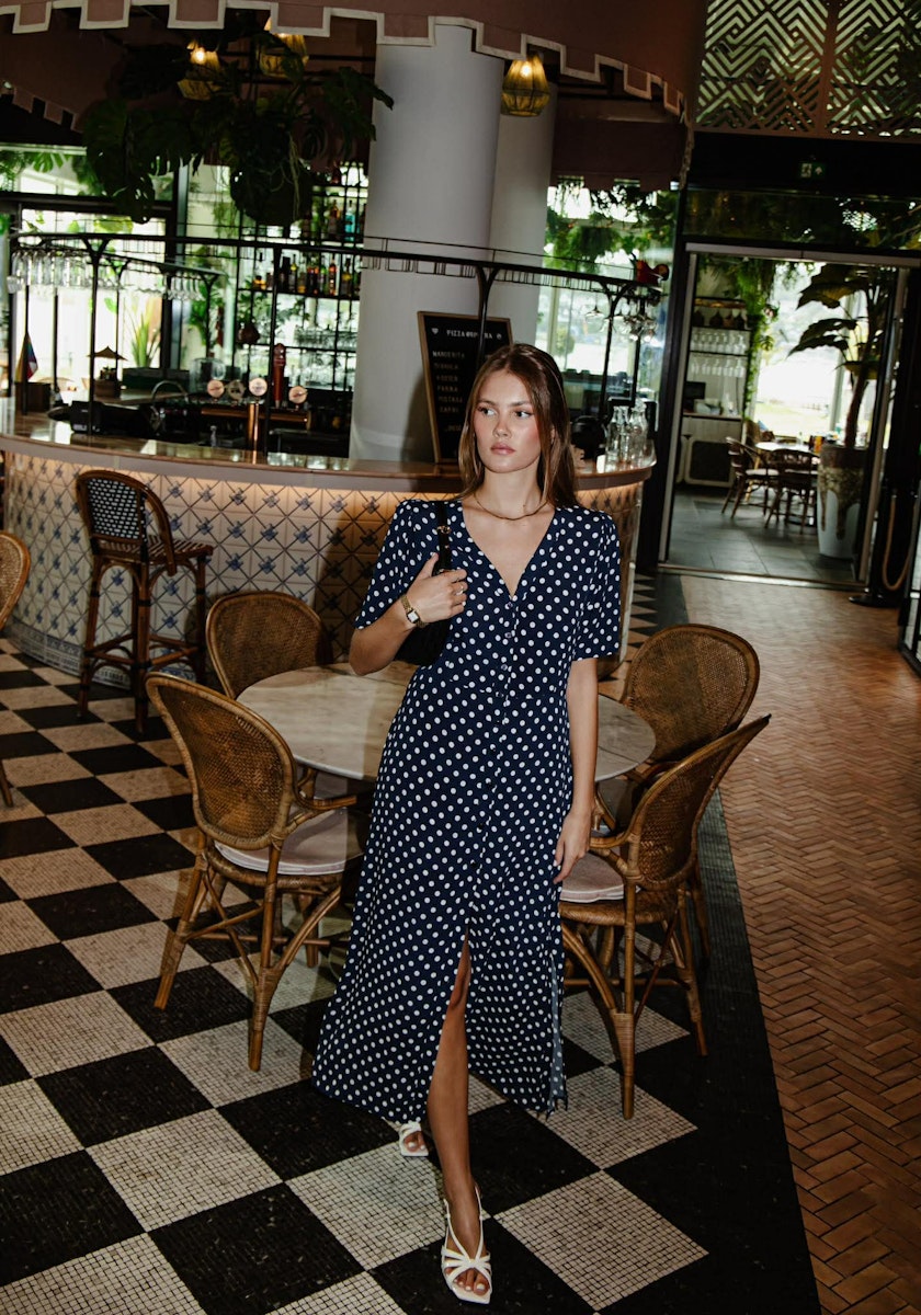 Angela Dress Polka Blue - Navy