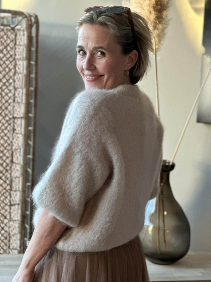 Materiale: 85% kid mohair 13% polyamid 2% elastan